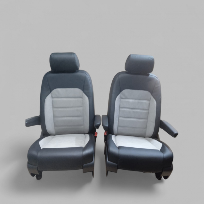 Сидения с електрорегулировкой Фольцваген Т6 . Кожа-алькантара, пять уровней подогрева, електрорегулировка водительского и пасажирского сидения, сидений( боковая поддержка, микролифт верх, низ.Вперед и назад. Подколенный микролифт. Наклон спинки сидения + подкачка спинки у верху и внизу. 4 позиции! Состояние как на фото!
